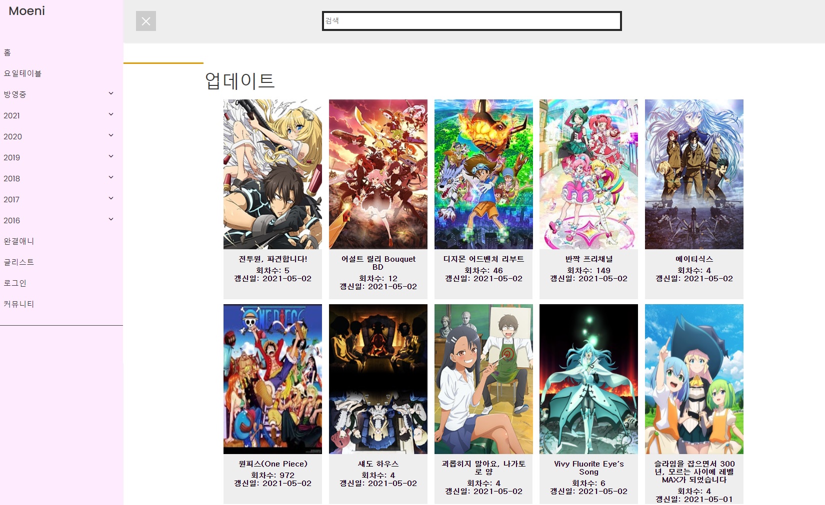 많은 무료 애니메이션 다시보기 사이트들 중에서도 오랜 기간동안 업데이트 되고 있는 대표적인 사이트입니다.